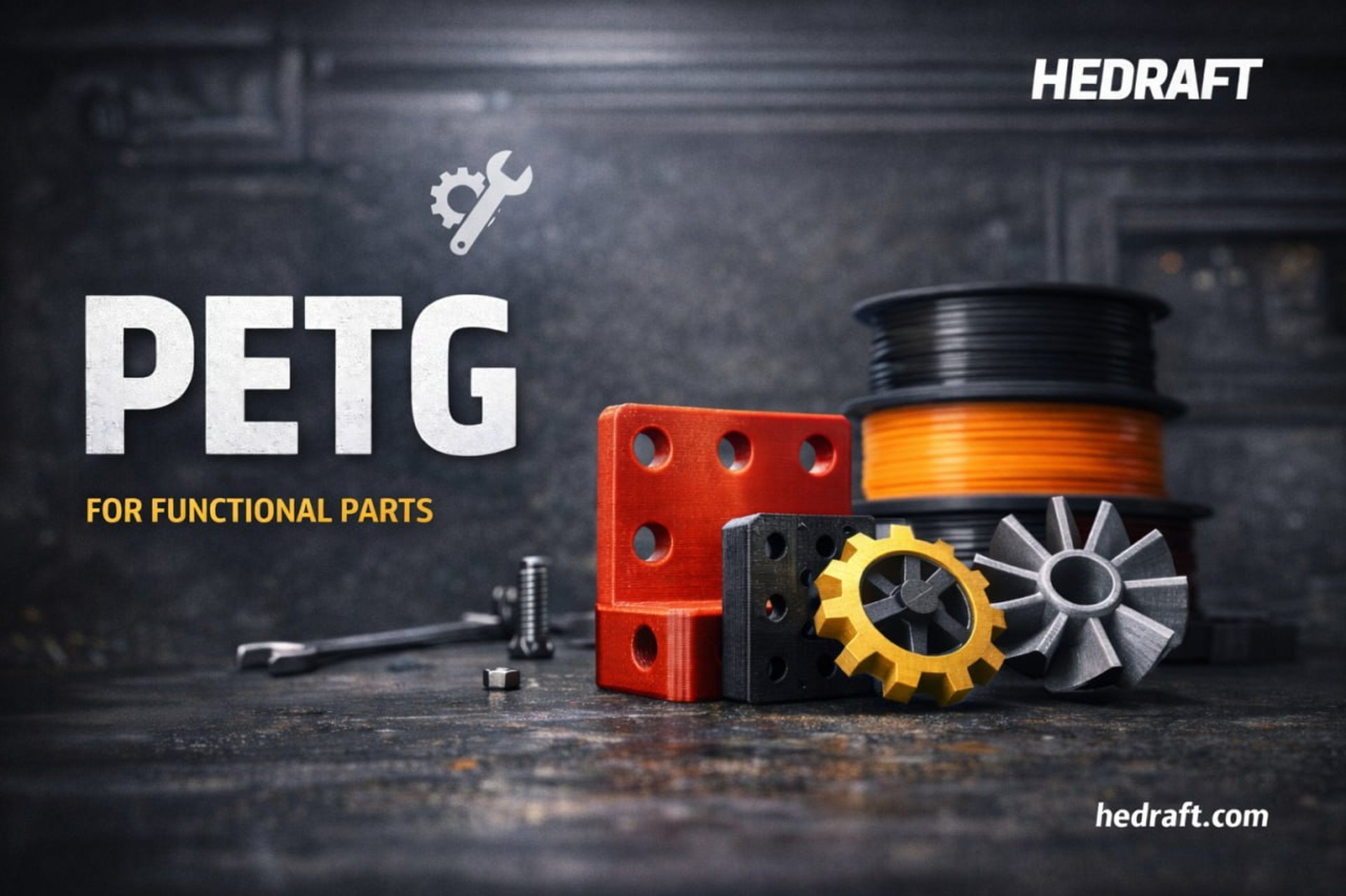 PETG — один из самых универсальных материалов для 3D-печати функциональных деталей. В HEDRAFT мы используем PETG для креплений, корпусов, кронштейнов и рабочих элементов, где нужна прочность, стойкость к влаге и стабильность формы. Работаем в Риге и по всей Латвии.